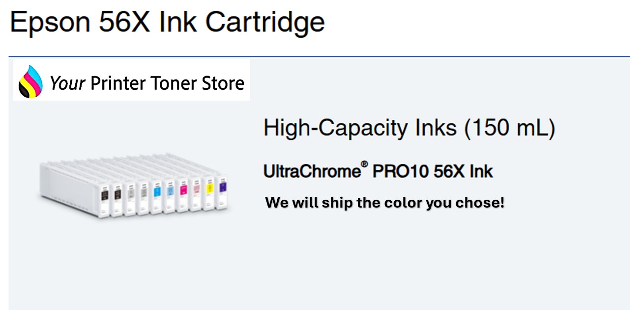 This genuine Epson OEM T56X Cyan 150mL includes free shipping in the contiguous United States courtesy of the Your Printer Toner Store network of sites.