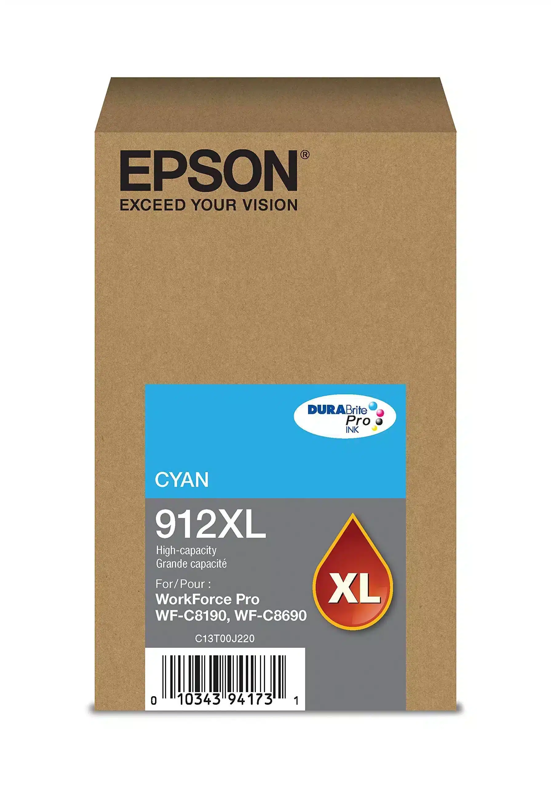 Epson T912XL DURABrite Pro High-Capacity Cyan Ink Cartridge T912XL220