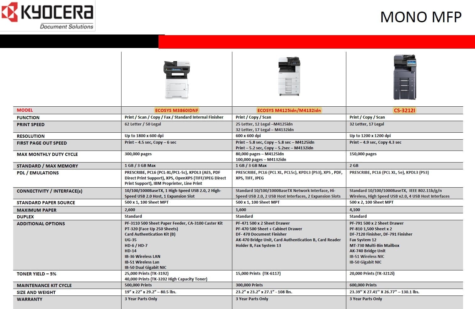 The Kyocera ECOSYS M4125idn is a versatile and reliable multifunction printer that meets the needs of modern office environments. With its eco-friendly design, robust security features, and high-quality performance, it’s a valuable asset for any business seeking productivity and efficiency.