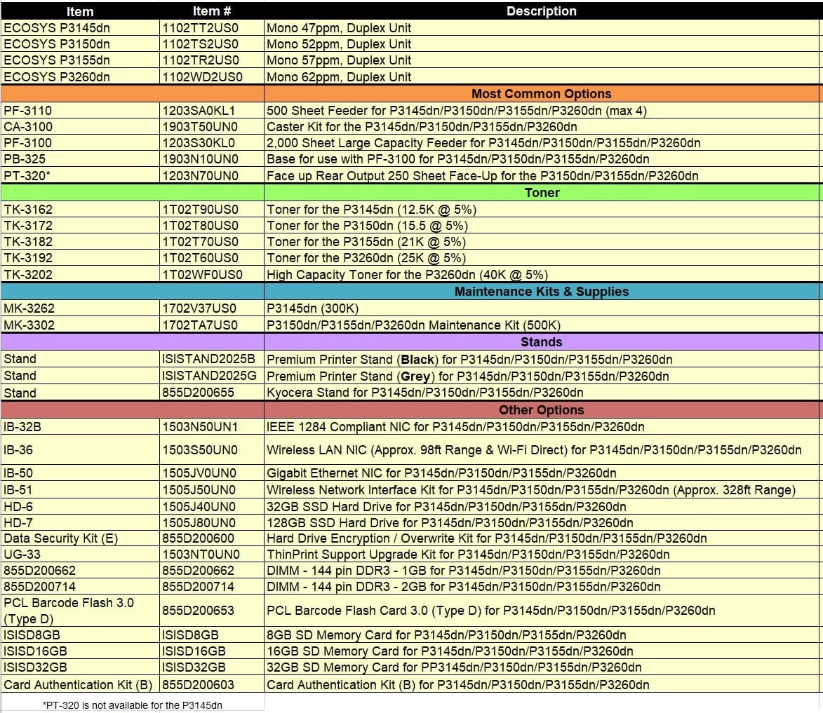 The KYOCERA ECOSYS P3145dn delivers desktop power and productivity at lightning speeds! Businesses that demand exceptional performance, reliability and versatility in a black & white printer need look no further than this compact, yet powerful, workhorse. With print speeds up to 47 ppm and standard duplex, the ECOSYS P3145dn can keep up with the demands of even the most fast-paced workgroup. Keep your workforce productive with On-The-Go mobile printing and walk-up USB capability. With exceptionally high paper capacity and a host of optional features, including advanced security and expandable storage, the ECOSYS P3145dn will help shift your document imaging into overdrive.