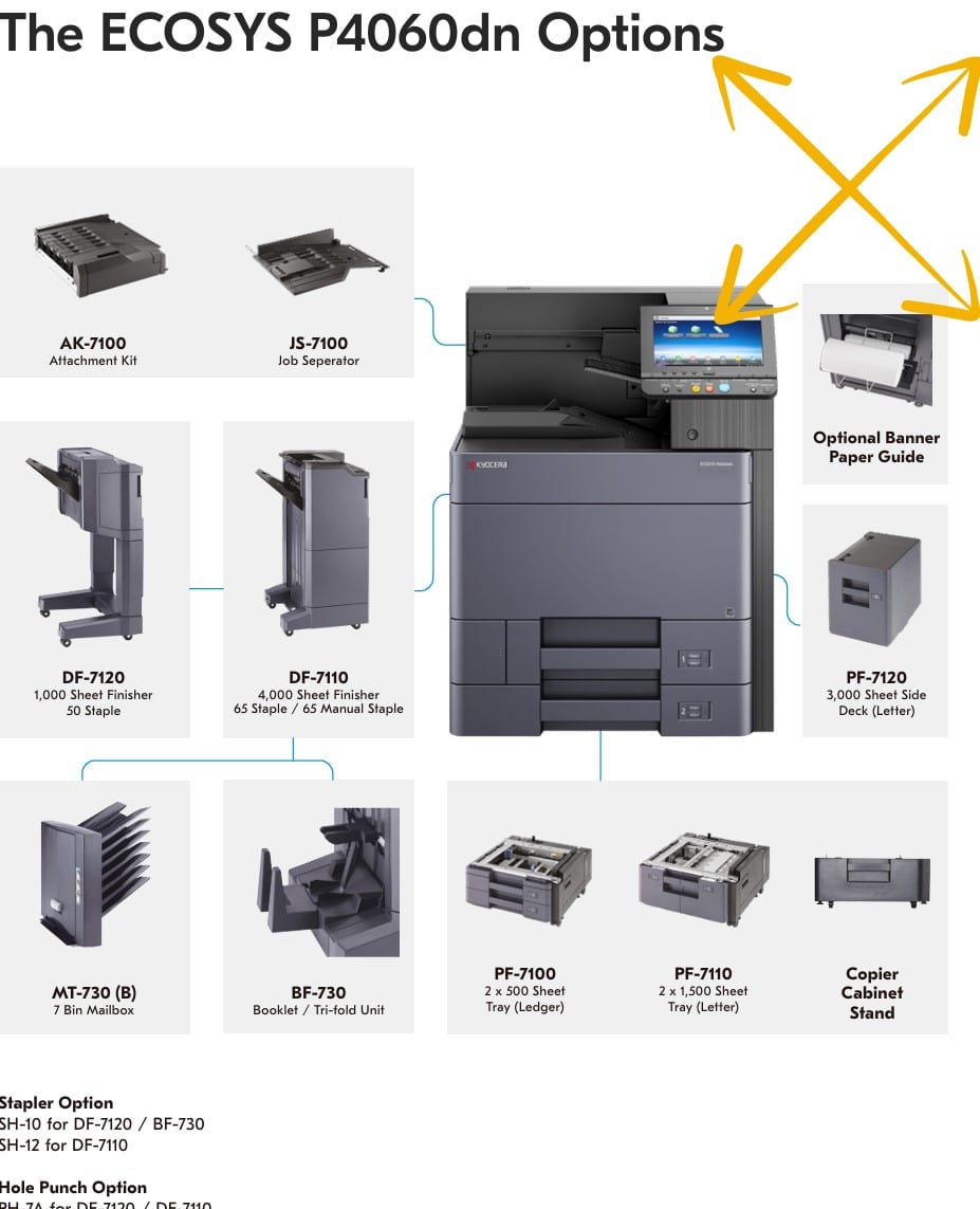 You may also search for KyoceraConfigurator online and build it to fit your needs Kyocera Product Configurator