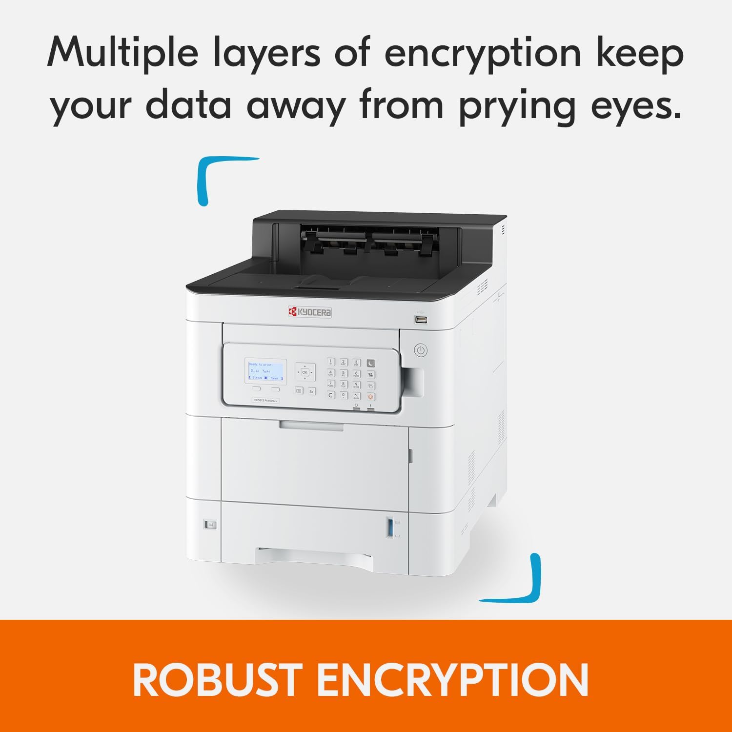 The Kyocera ECOSYS PA4000cx combines performance, sustainability, and security in a compact design, making it an ideal choice for offices seeking reliable and versatile printing solutions.