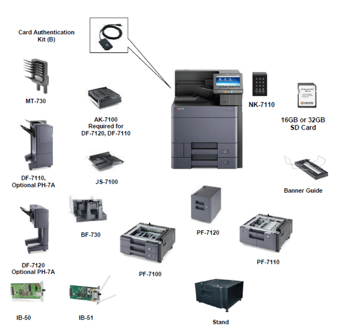 Kyocera TASKalfa MZ2501ci needs certain additions selected to be a fully functioning machine.